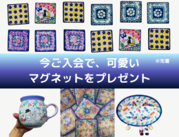 アトリエデコラトル横浜にご入会で、プレゼントキャンペーン★お得にポーリッシュポタリーの絵付けを始めちゃおう♪可愛いポーリッシュポタリーのマグネットがもらえちゃう★